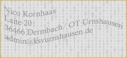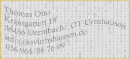 ImpressumAngaben gemäß § 5 TMG:Vertreten durch:Thomas OttoJens ReffkeNico KornhaasRegistereintrag:Eintragung im Vereinsregister.Registergericht:Amtsgericht Bad SalzungenRegisternummer: VR 282Aufsichtsbehörde:Landratsamt Bad SalzungenVerantwortlich für den Inhalt nach § 55 Abs. 2 RStV:Haftungsausschluss:Haftung für InhalteDie Inhalte unserer Seiten wurden mit größter Sorgfalt erstellt. Für die Richtigkeit, Vollständigkeit und Aktualität der Inhalte können wir jedoch keine Gewähr übernehmen. Als Diensteanbieter sind wir gemäß § 7 Abs.1 TMG für eigene Inhalte auf diesen Seiten nach den allgemeinen Gesetzen verantwortlich. Nach §§ 8 bis 10 TMG sind wir als Diensteanbieter jedoch nicht verpflichtet, übermittelte oder gespeicherte fremde Informationen zu überwachen oder nach Umständen zu forschen, die auf eine rechtswidrige Tätigkeit hinweisen. Verpflichtungen zur Entfernung oder Sperrung der Nutzung von Informationen nach den allgemeinen Gesetzen bleiben hiervon unberührt. Eine diesbezügliche Haftung ist jedoch erst ab dem Zeitpunkt der Kenntnis einer konkreten Rechtsverletzung möglich. Bei Bekanntwerden von entsprechenden Rechtsverletzungen werden wir diese Inhalte umgehend entfernen.Haftung für LinksUnser Angebot enthält Links zu externen Webseiten Dritter, auf deren Inhalte wir keinen Einfluss haben. Deshalb können wir für diese fremden Inhalte auch keine Gewähr übernehmen. Für die Inhalte der verlinkten Seiten ist stets der jeweilige Anbieter oder Betreiber der Seiten verantwortlich. Die verlinkten Seiten wurden zum Zeitpunkt der Verlinkung auf mögliche Rechtsverstöße überprüft. Rechtswidrige Inhalte waren zum Zeitpunkt der Verlinkung nicht erkennbar. Eine permanente inhaltliche Kontrolle der verlinkten Seiten ist jedoch ohne konkrete Anhaltspunkte einer Rechtsverletzung nicht zumutbar. Bei Bekanntwerden von Rechtsverletzungen werden wir derartige Links umgehend entfernen.UrheberrechtDie durch die Seitenbetreiber erstellten Inhalte und Werke auf diesen Seiten unterliegen dem deutschen Urheberrecht. Die Vervielfältigung, Bearbeitung, Verbreitung und jede Art der Verwertung außerhalb der Grenzen des Urheberrechtes bedürfen der schriftlichen Zustimmung des jeweiligen Autors bzw. Erstellers. Downloads und Kopien dieser Seite sind nur für den privaten, nicht kommerziellen Gebrauch gestattet. Soweit die Inhalte auf dieser Seite nicht vom Betreiber erstellt wurden, werden die Urheberrechte Dritter beachtet. Insbesondere werden Inhalte Dritter als solche gekennzeichnet. Sollten Sie trotzdem auf eine Urheberrechtsverletzung aufmerksam werden, bitten wir um einen entsprechenden Hinweis. Bei Bekanntwerden von Rechtsverletzungen werden wir derartige Inhalte umgehend entfernen.